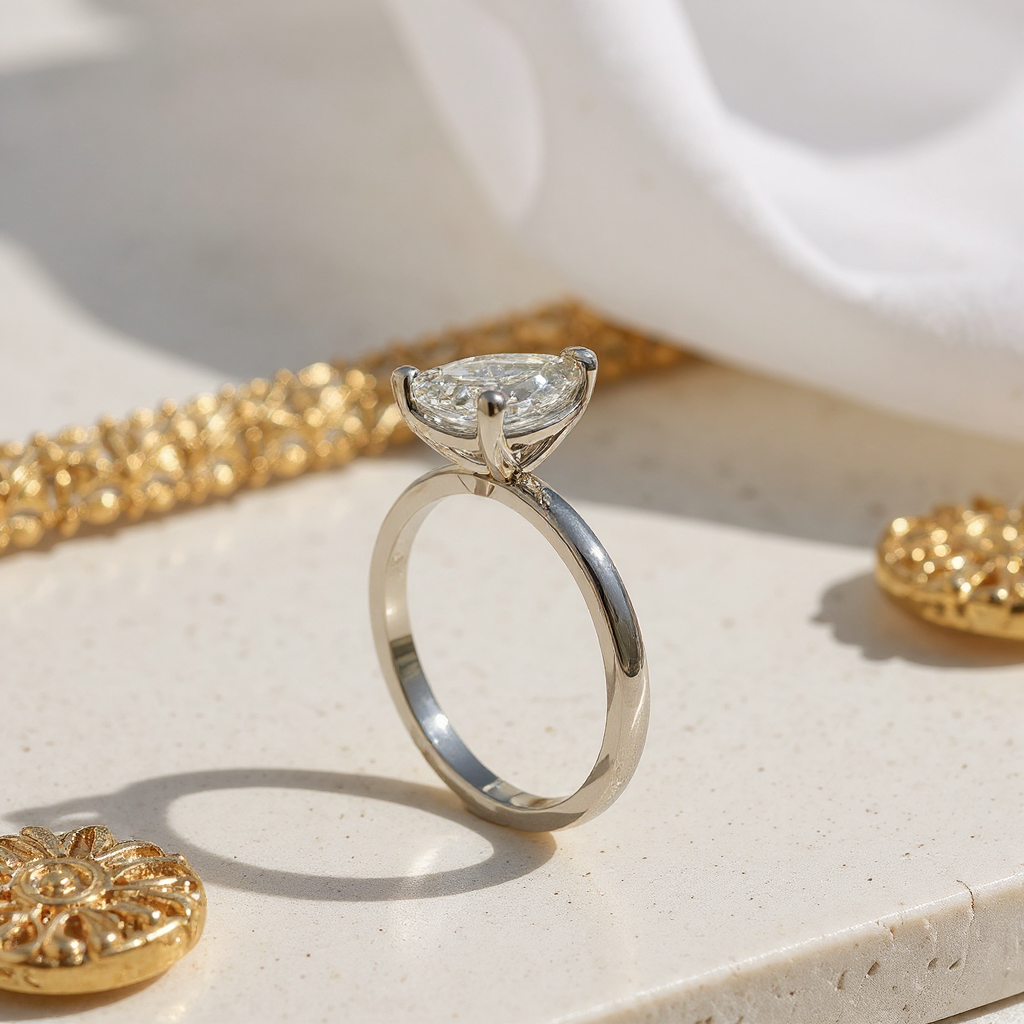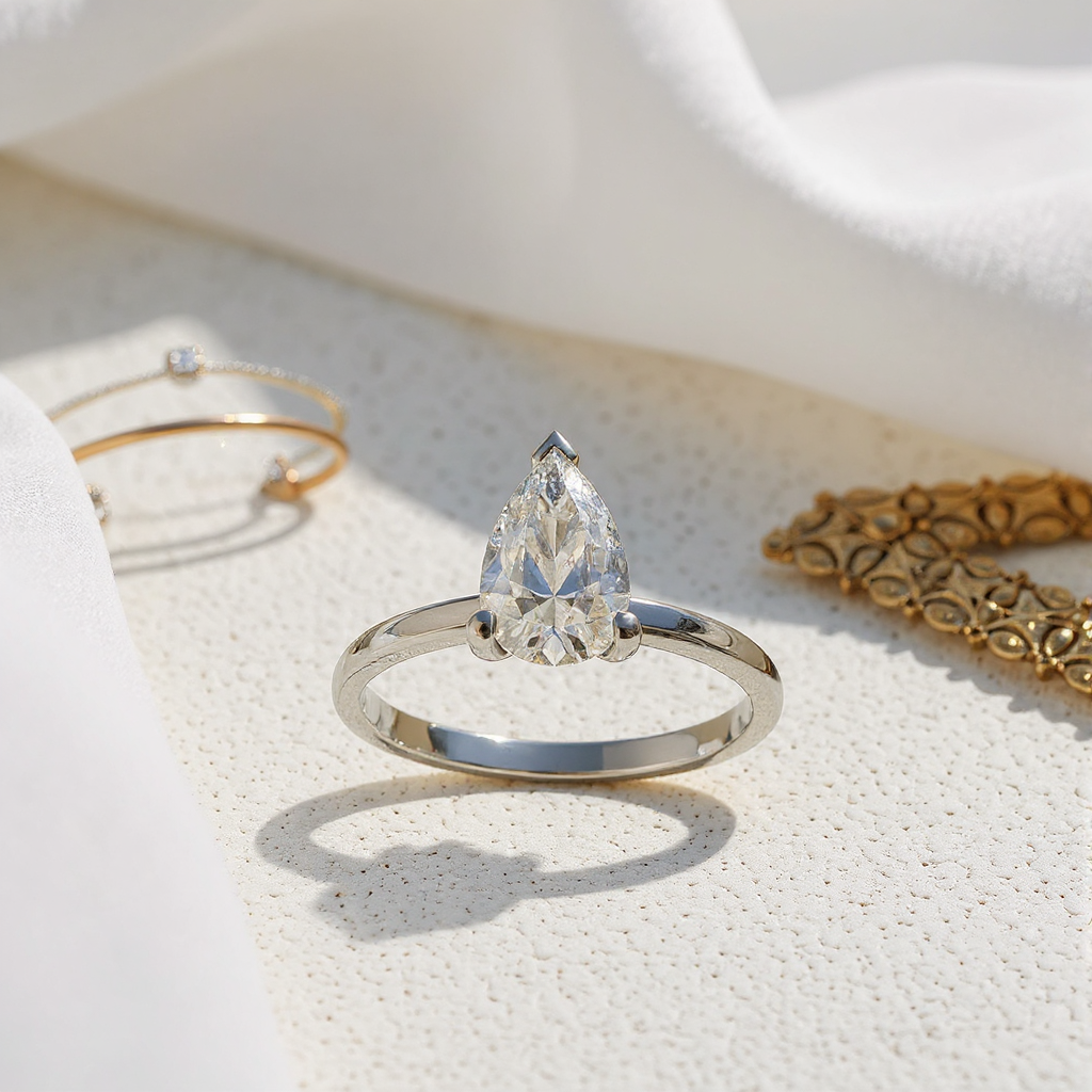 1.04 Karat Damla Tektaş Laboratuvar Pırlanta Yüzük